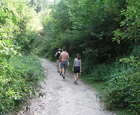 Luncavita pe jos, mergand pe un drumeag de-a lungul paraului Luncavita.